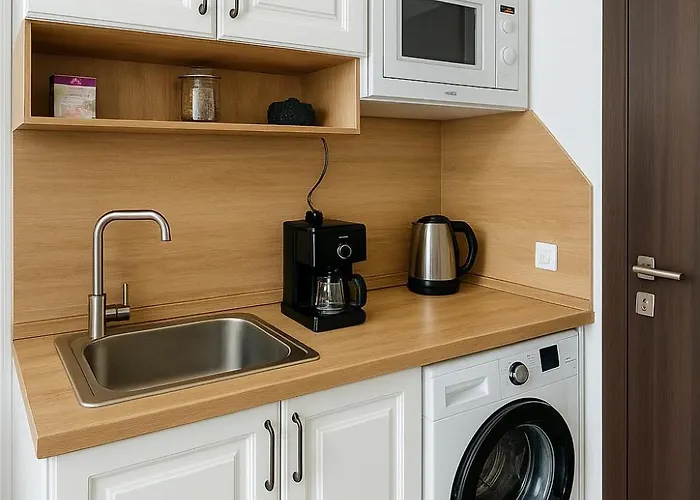 W obiekcie noclegowym znajduje się aneks kuchenny z kuchenką mikrofalową, czajnikami elektrycznymi i lodówką, a także urządzenie do parzenia kawy/herbaty. Ten apartament mieści się stosunkowo w małej odległości od dworca autobusowego Central Station Varna. Apartament Aпартамент 5 dysponuje tarasem, z którego roztacza się widok na miasto.